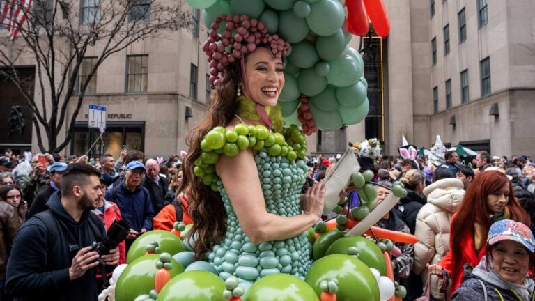 People wearing decorated hats and costumes participated in an Easter parade on Fifth Avenue in New York on Sunday. ___ …
